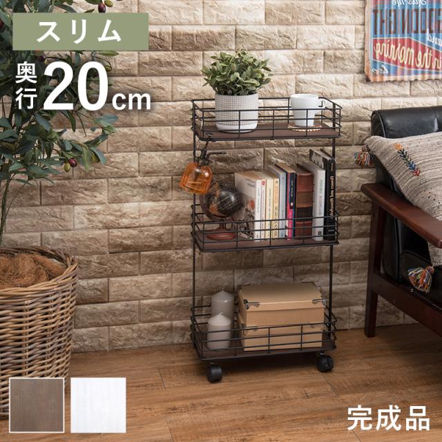 マルチに使える 3段ワゴン キャスター付き 完成品 スリム 【送料無料】 キッチンワゴン スリム 北欧 おしゃれ ワゴンラック 3段 オープンワゴン 奥行20 キッチンサイドワゴン キッチンサイドラック 安い 木製 天板 おすすめ マルチワゴン