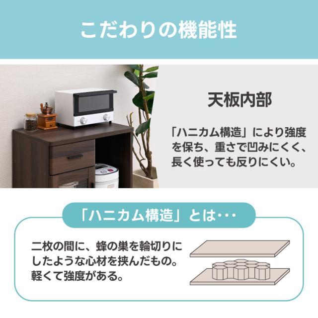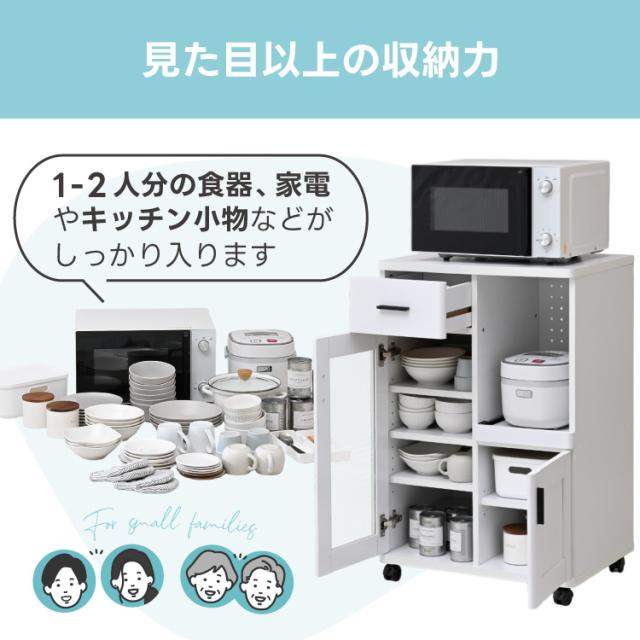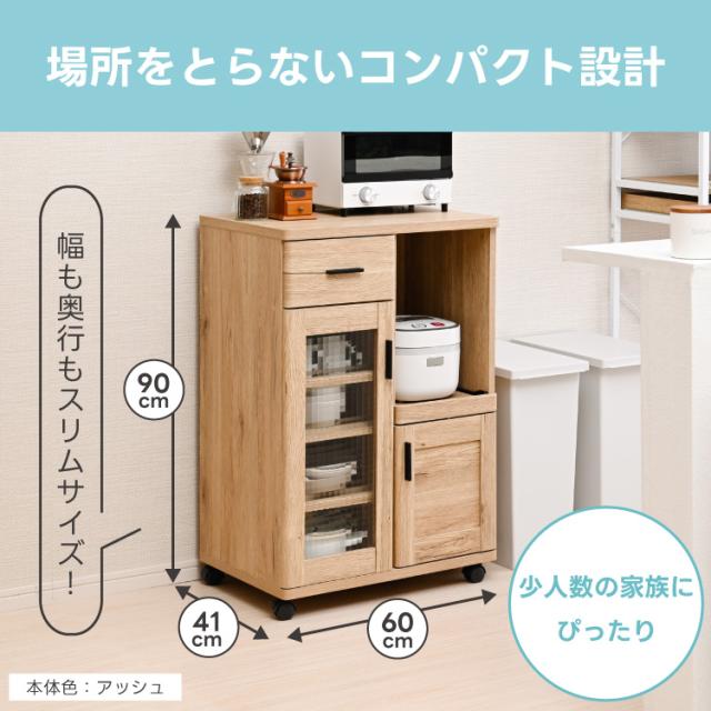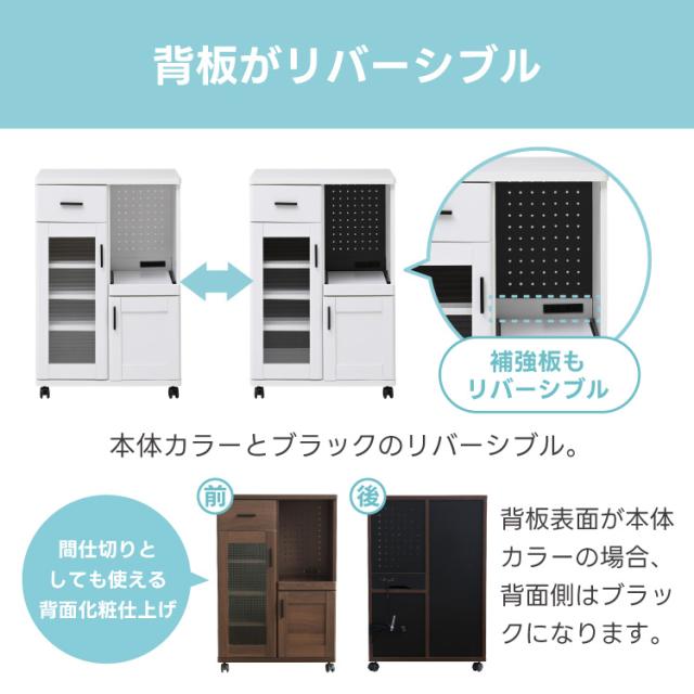 キッチンカウンター キャスター付き コンセント付き 幅60cm 間仕切り コンパクト 収納 レンジ台 炊飯器ラック スリム 家電収納 キッチンワゴン 両面 おしゃれ 食器棚 背面化粧仕上げ