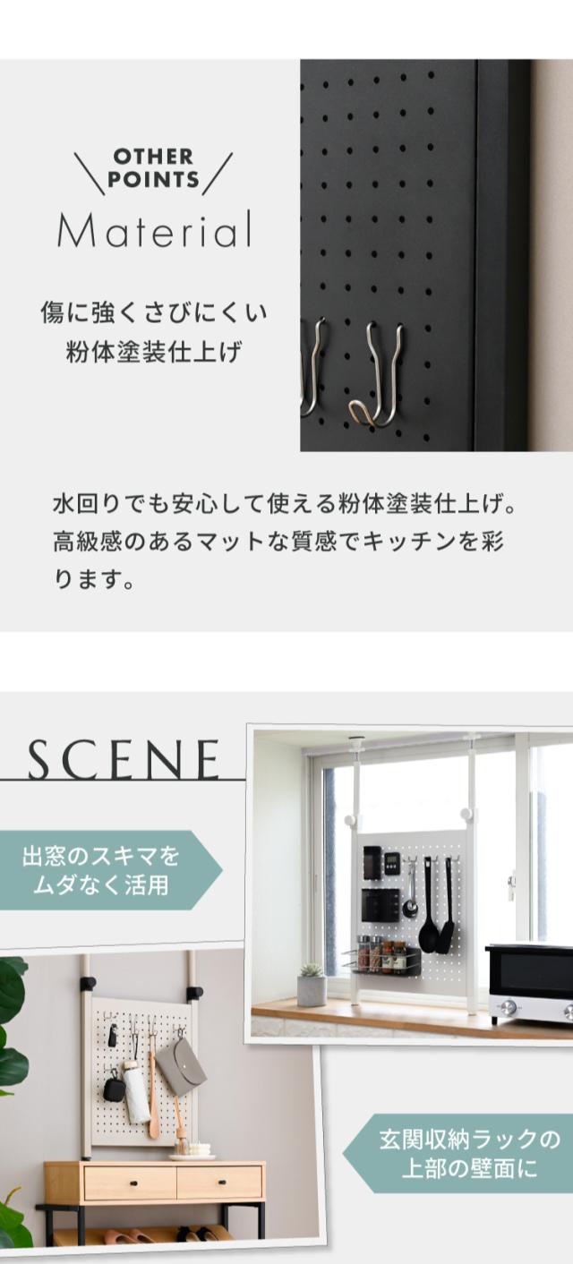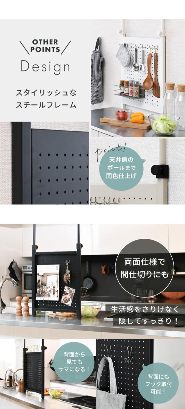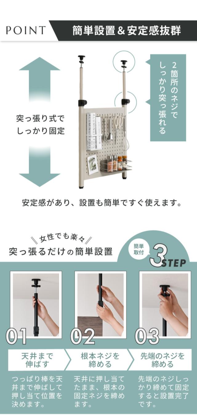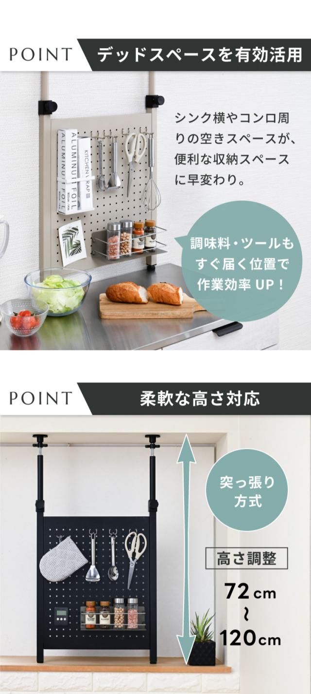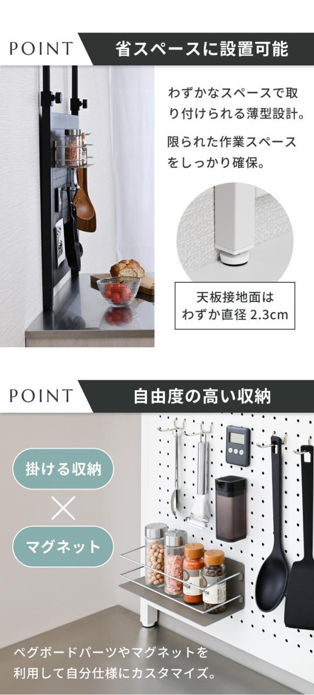 突っ張り キッチンラック 有孔ボード パンチングボード キッチン収納 突っ張りラック つっぱり棚 壁面収納 おしゃれ スリム スパイスラック 調味料ラック キッチン ツール収納 スチール パネル 薄型 幅45