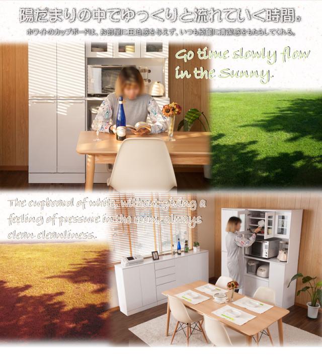 前板には傷や水に強いハイグロスシートを使い、それ以外もプリント紙に樹脂コート加工をして傷や劣化に強くしています。品質・価格を比べていただいても、納得のカップボードです。