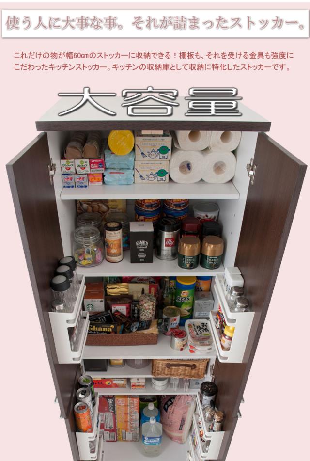 大容量 キッチンストッカー スリム 幅60cm ダークブラウン 送料無料 60幅 木製 キッチン収納棚 扉付き キッチン収納庫家具 キッチンパントリー収納庫 おしゃれ 北欧 ハイタイプ 高さ180