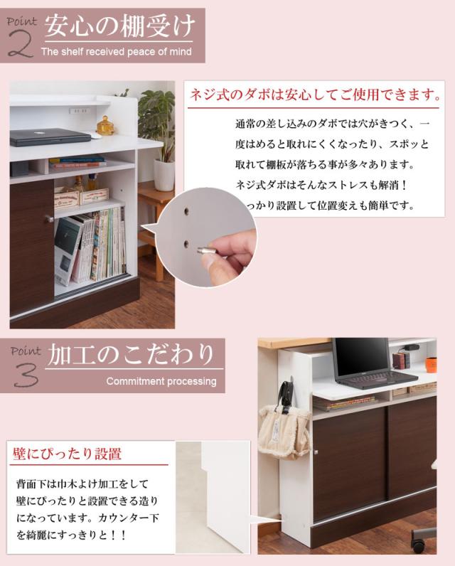 家事をしながら見守れる カウンター下デスク ブラウン送料無料 幅90cm 奥行30cm カウンターデスク リビングデスク ミニデスク リビング学習机 コンパクト スリム 省スペース 勉強机 在宅勤務 在宅ワーク テレワーク