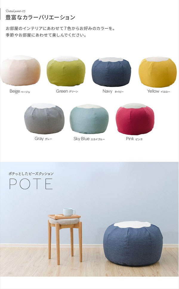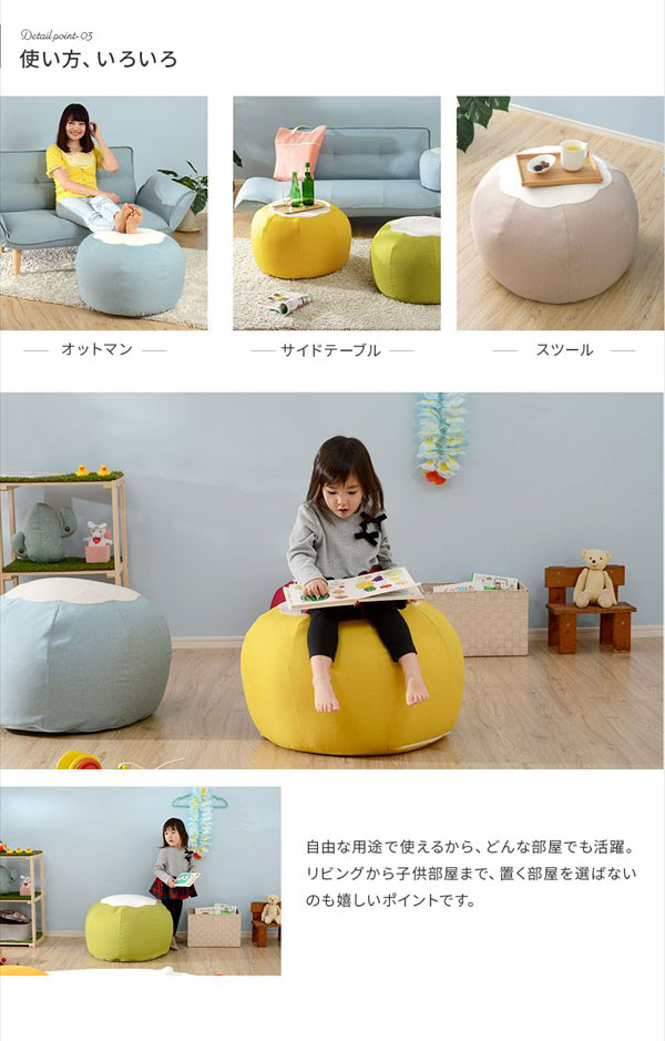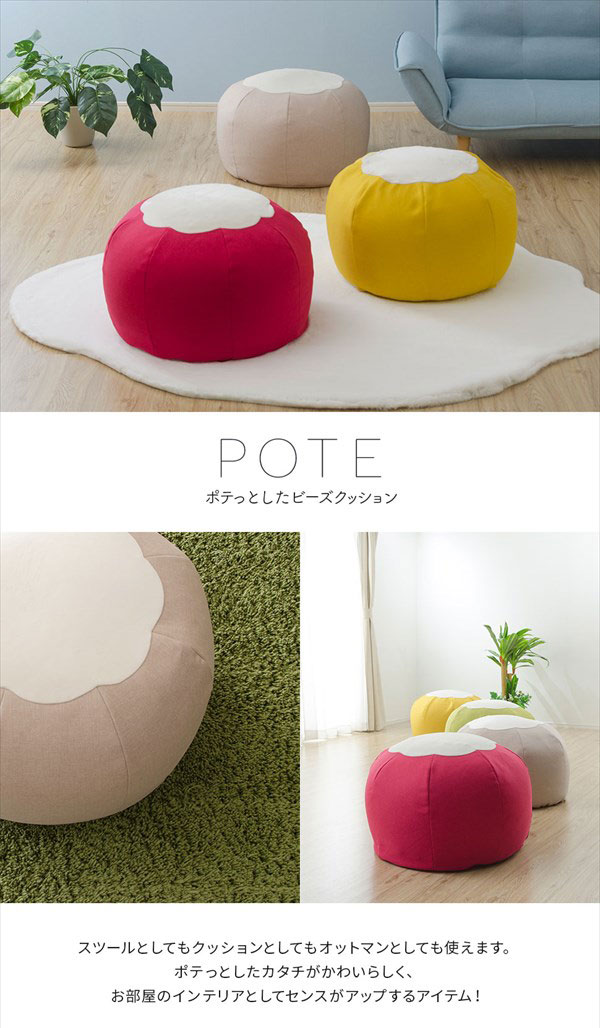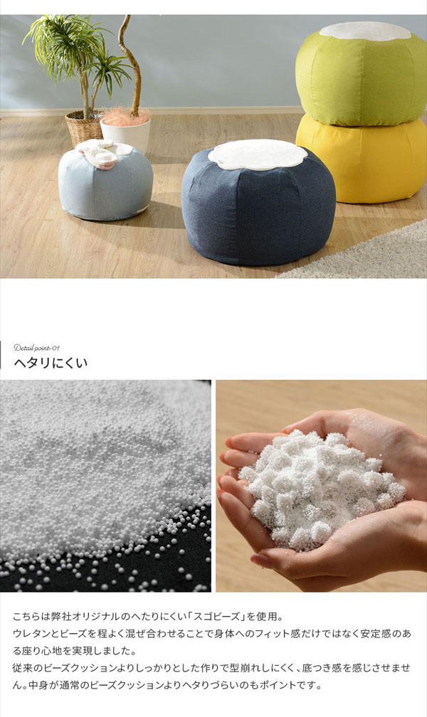 ポテっと座る かわいい ビーズクッション 送料無料 スツール オットマン 日本製 おしゃれ 可愛い 小さめ 丸 ビーズソファー 人をダメにする 洗える カバー付き 激安