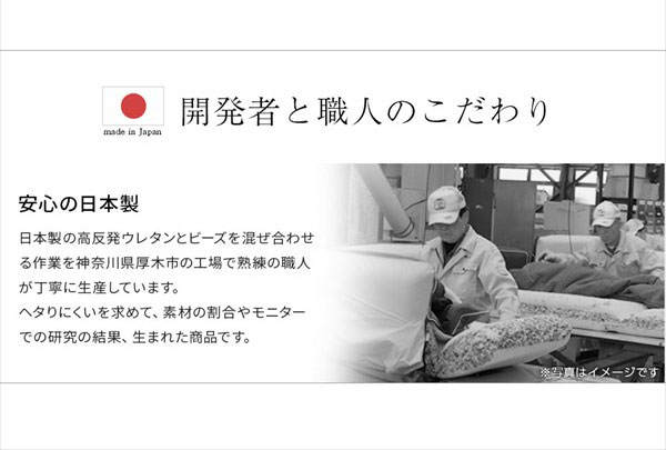 中材:発泡ポリスチレンビーズ、高弾性ウレタンフォーム