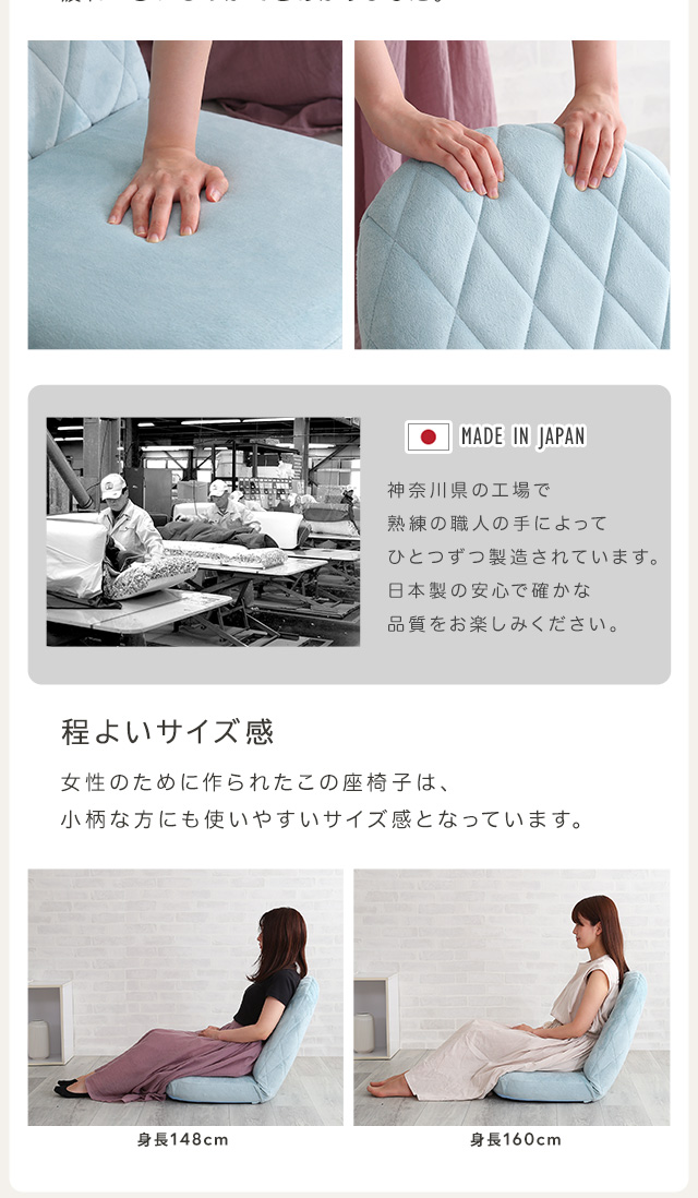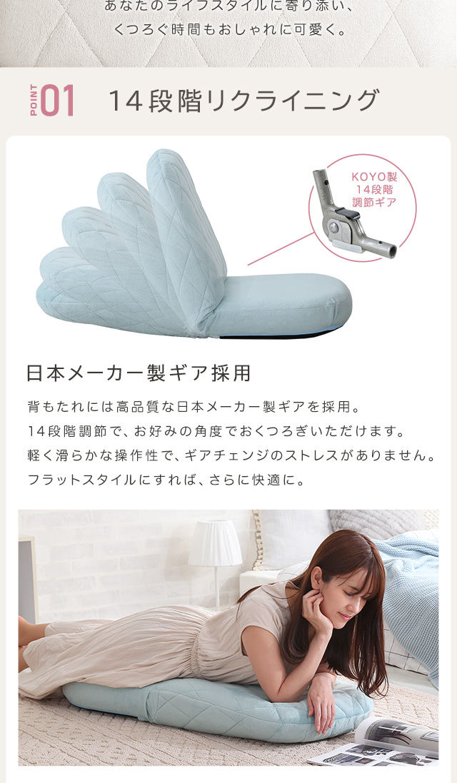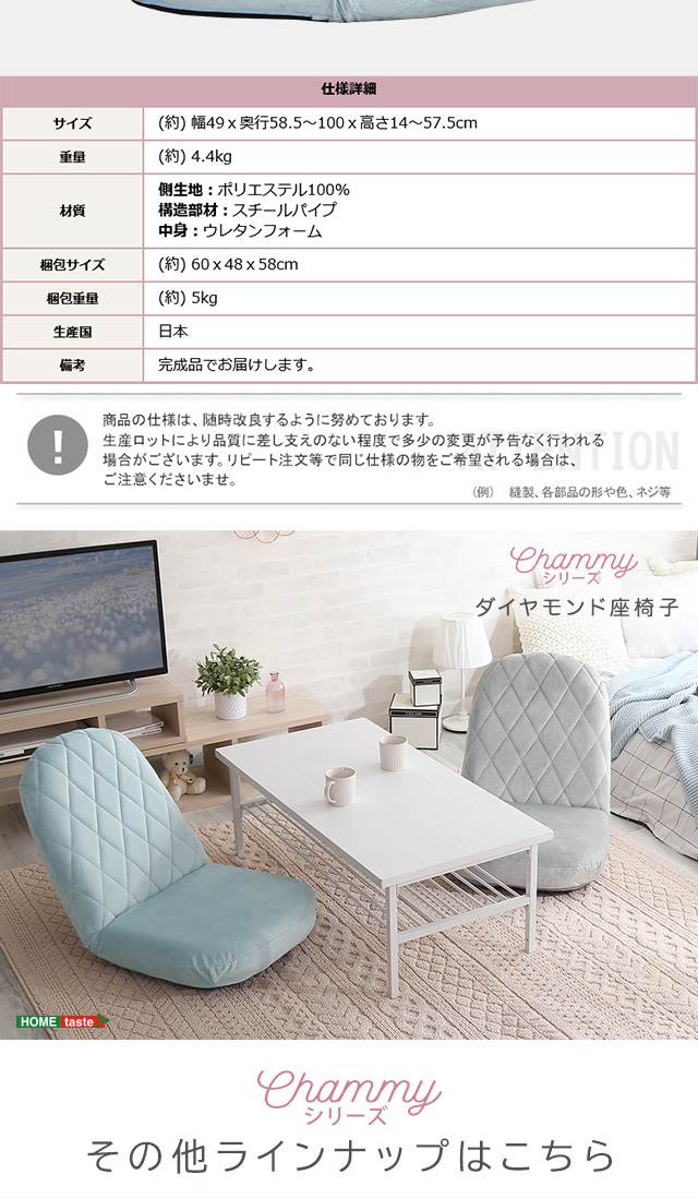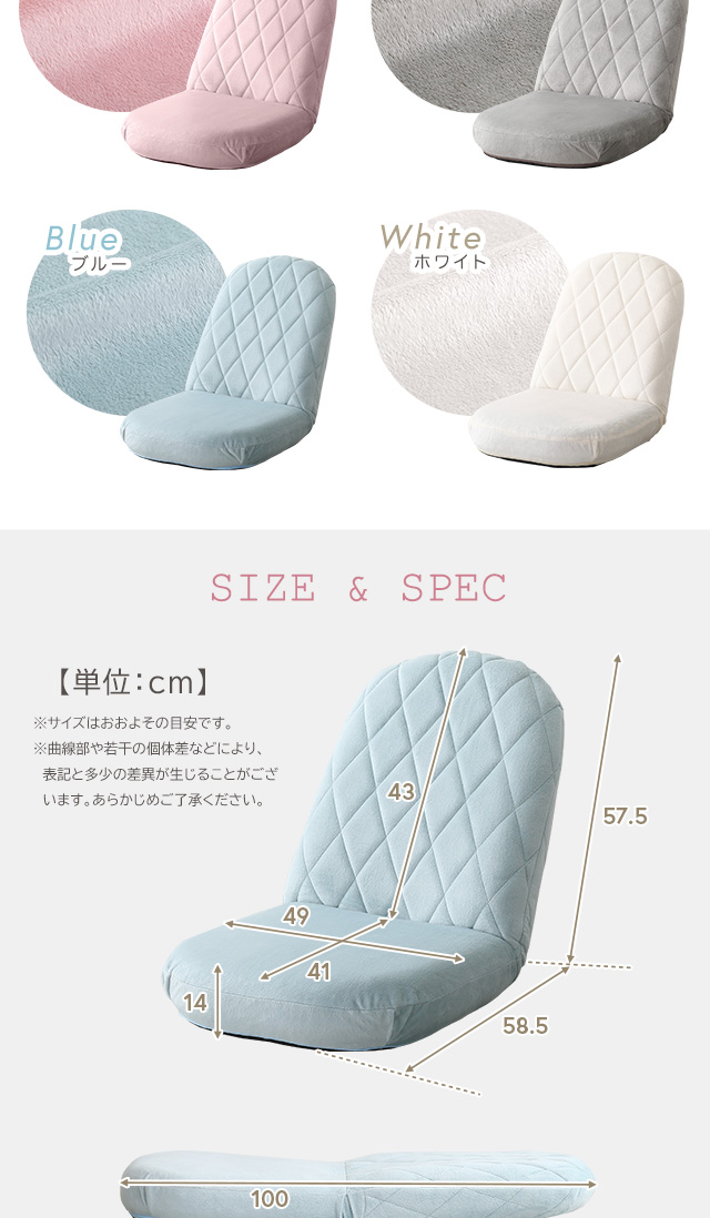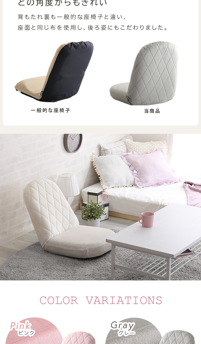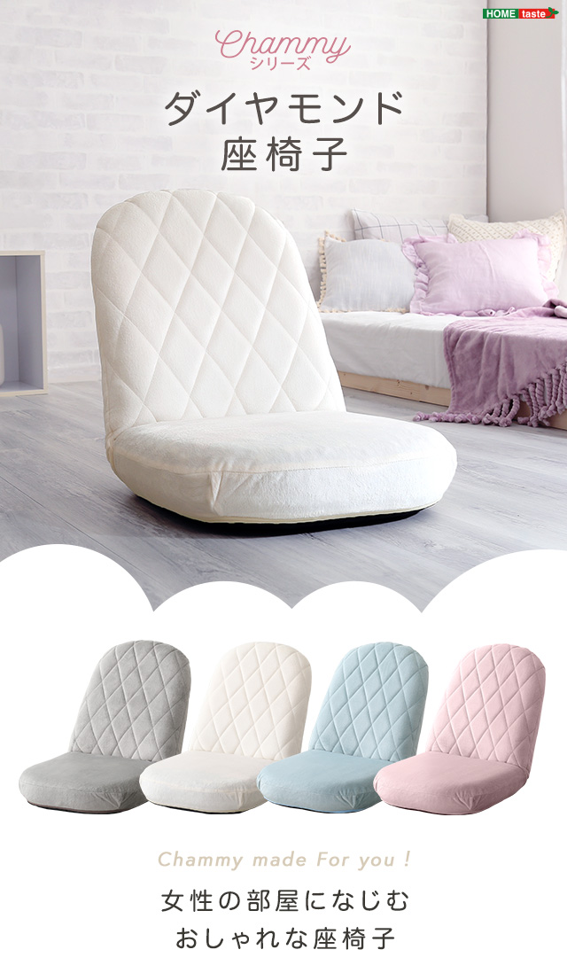 女子のお部屋に 可愛い ダイヤモンドステッチ 座椅子 送料無料 おしゃれ かわいい リクライニング ピンク 水色 グレー ホワイト 白 コンパクト 小さい ミニ座椅子 小さめ 一人暮らし 1人掛け ウレタン クッション 日本製
