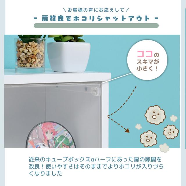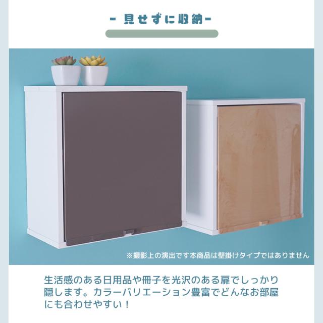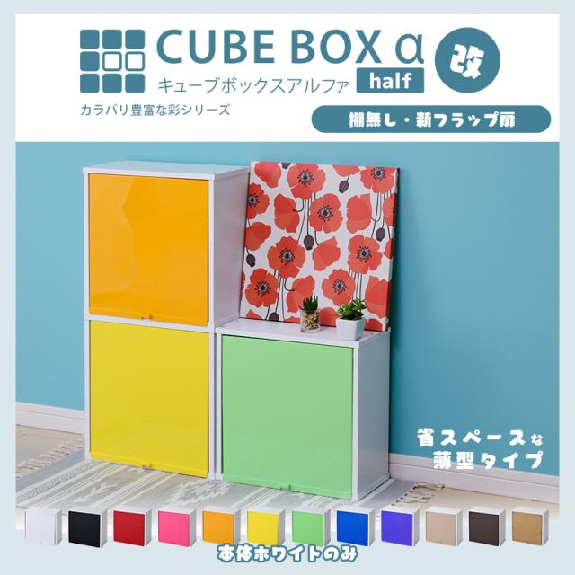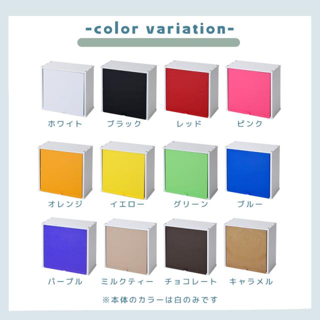 【完成品】カラフル12色から選べる 扉付き 薄型 キューブボックスα ハーフ 彩 木製 収納棚 カラーボックス スリム 浅型 飾り棚 鏡面 ホワイト ブラック 白 黒 ピンク 他 卓上 ミニ食器棚