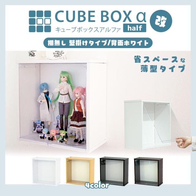 壁掛け キューブボックスα 改 新フラップ扉 or フロントパネル 背面ホワイトスチール 【送料無料】 コレクションケース フィギュアケース UVカット 透明扉付き アクリル 蓋付き 木製 ウォールラック