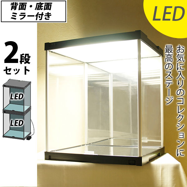 お得な2段セット フィギアケース J-STAGE LED&2面ミラータイプ 送料無料 コレクションケース LED アクリルケース 背面ミラー 底面ミラー キュリオケース フィギュアケース コレクションラック ショーケース 30cm ジェイ・ステージ