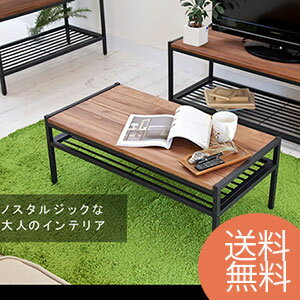 ノスタルジックな大人家具 レトロ センターテーブル 送料無料 おしゃれ アンティーク 木製天板 アイアン パイン材 オイル塗装 ソファー ローテーブル 激安 棚付き