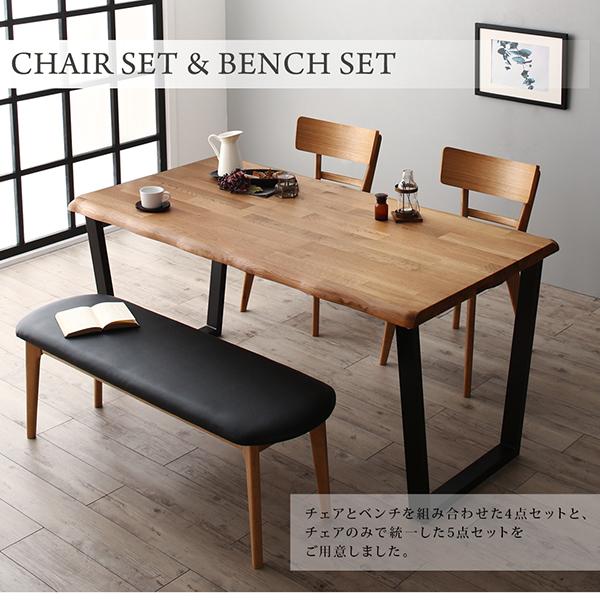 天然木オーク 無垢材 ダイニング 5点セット テーブルW120+チェア4脚 送料無料 4人掛け ダイニングテーブルセット 無垢 北欧 おしゃれ ナチュラル モダン 4人用 ダイニングベンチ 椅子 2脚セット