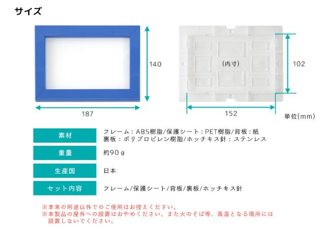 素材:フレーム/ABS、保護シート:PETシート/背板:紙、裏板/PP、ホッチキス針:ステンレス
