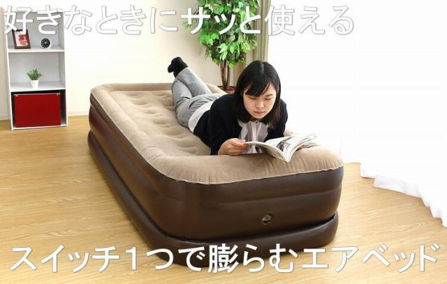 電動エアーベッド シングル 専用カバーセット 厚さ50cm おしゃれ 極厚 簡易ベッド コンパクト キャリーバッグ付き エアベッド 収納簡単 来客用 ごろ寝 翌日配送