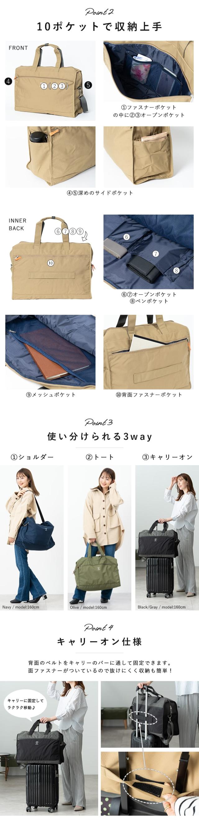 旅行、帰省、スポーツジム、マザーズバッグとしてなど、様々なシーンで活躍間違いなしです。