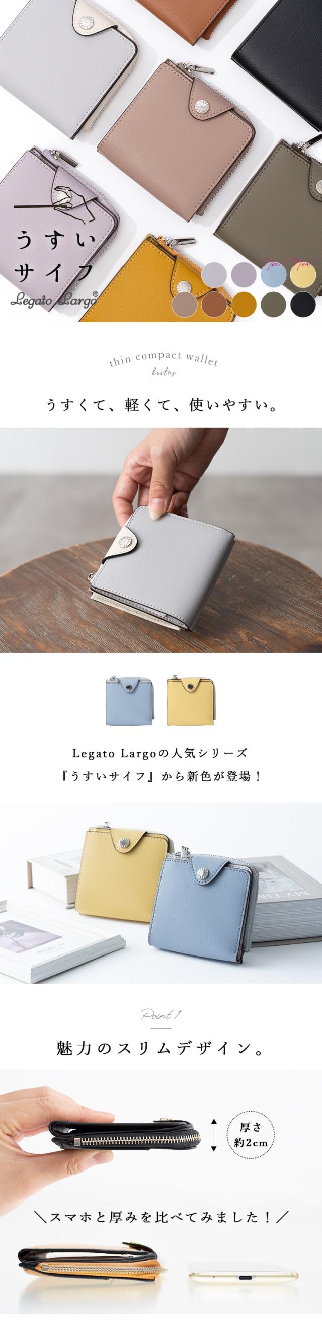財布 レディース 二つ折り 薄い コンパクト ブランド Legato Largo レガートラルゴ うすい財布 薄型 ウォレット かわいい おしゃれ カード 軽量 スリム 小さめ ミニ財布 柔らか 小銭入れ ギフト プレゼント メール便送料無料