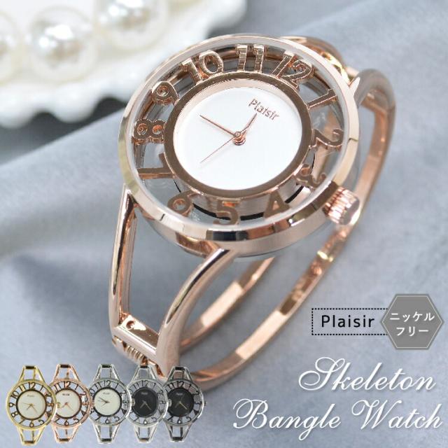 腕時計 レディース バングルウォッチ ニッケルフリー バイカラー シェルダイヤル 金属アレルギー かわいい おしゃれ きれい 大人 透かし 女性 ギフト プレゼント アレルギー対応 肌に優しい 1年間のメーカー保証付 メール便送料無料
