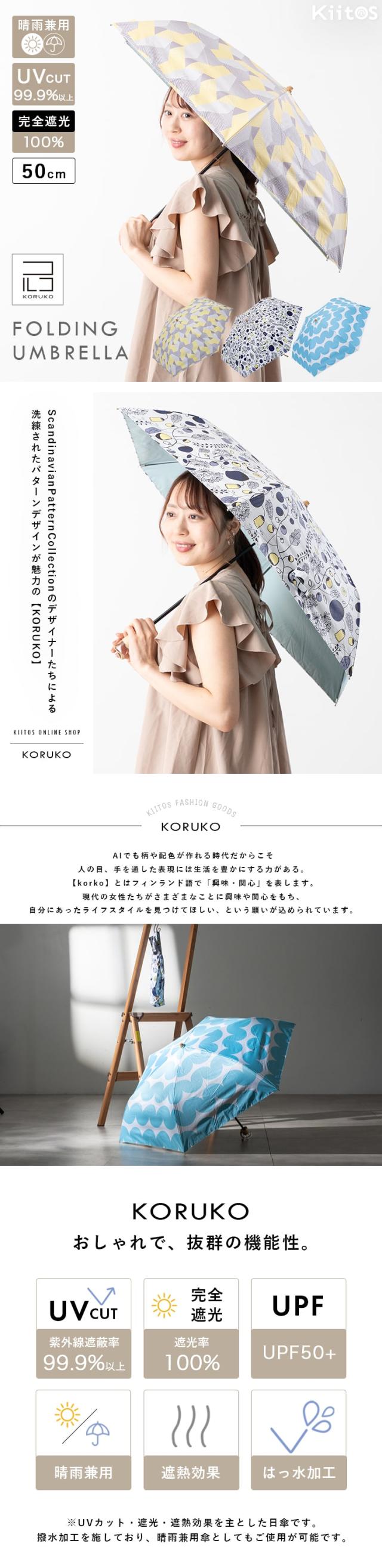 日傘 折りたたみ 軽量 50cm 完全遮光100% UV 晴雨兼用 ブランド KORUKO コルコ ポーチ付き 遮熱 撥水加工 upf50+ かわいい おしゃれ 日焼け対策 紫外線対策 6本骨 プレゼント ギフト