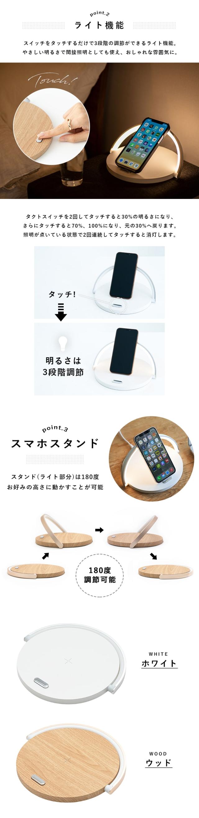 ナイトライト デスクライト 充電スタンド おしゃれ ワイヤレス充電 qi急速充電 iphone android インテリア 照明 北欧 電球色 間接照明 子供 大人 スマホスタンド ウッド 読書灯 ヘッドサイド opt ブランド プレゼント ギフト