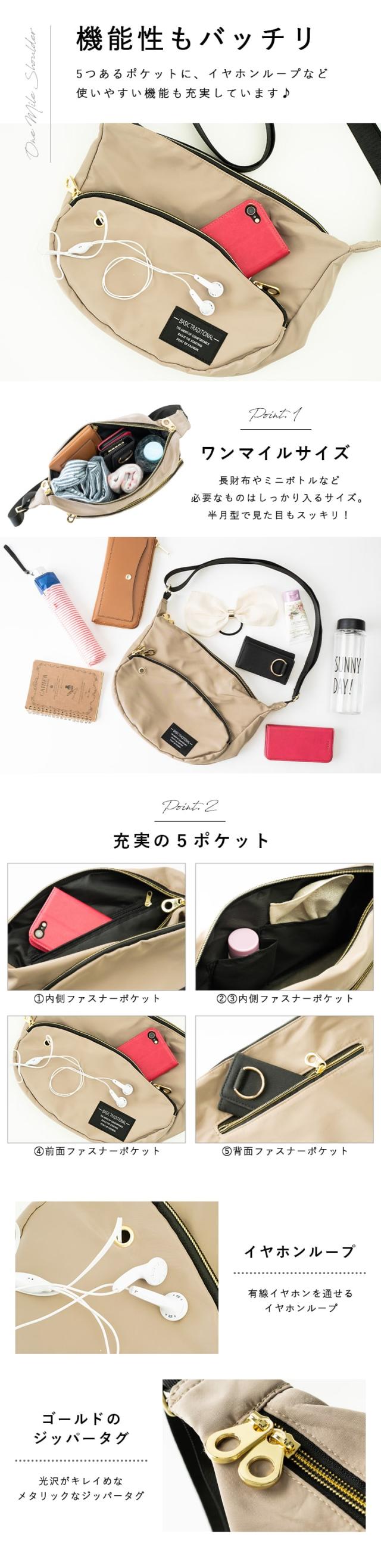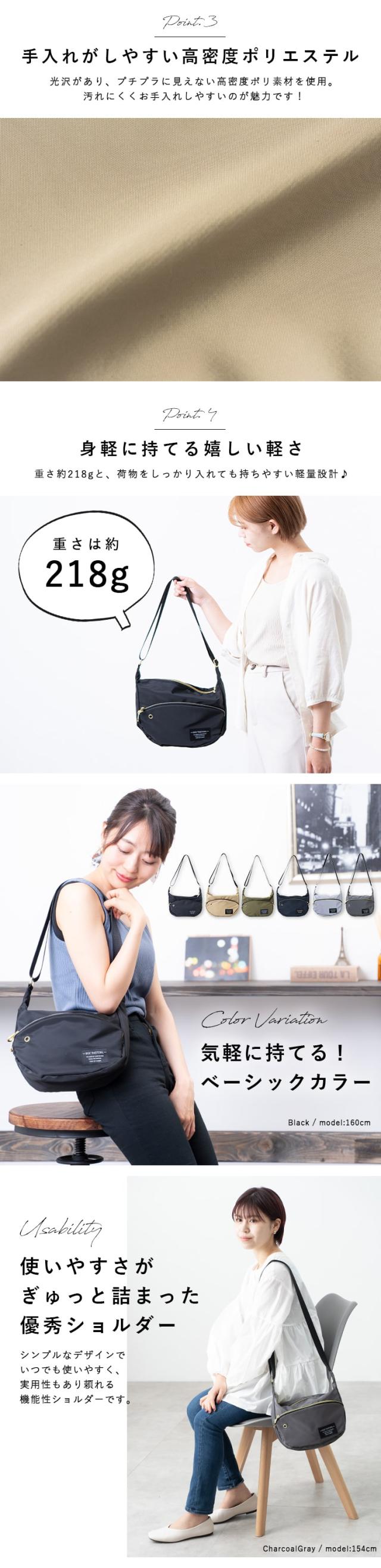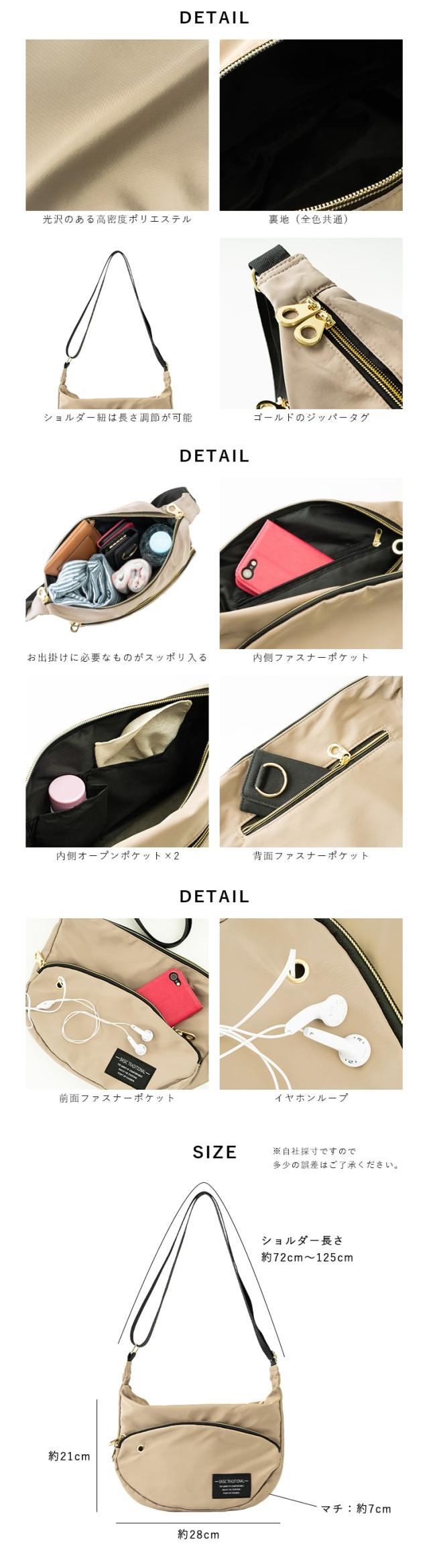 ショルダーバッグ レディース 斜め掛け 大人 軽い 軽量 小さめ かわいい おしゃれ ナイロン 光沢 イヤホンループ ワッペン ベーシック シンプル ユニセックス 黒 男女兼用 通学 通勤 旅行 プレゼント ギフト メール便送料無料