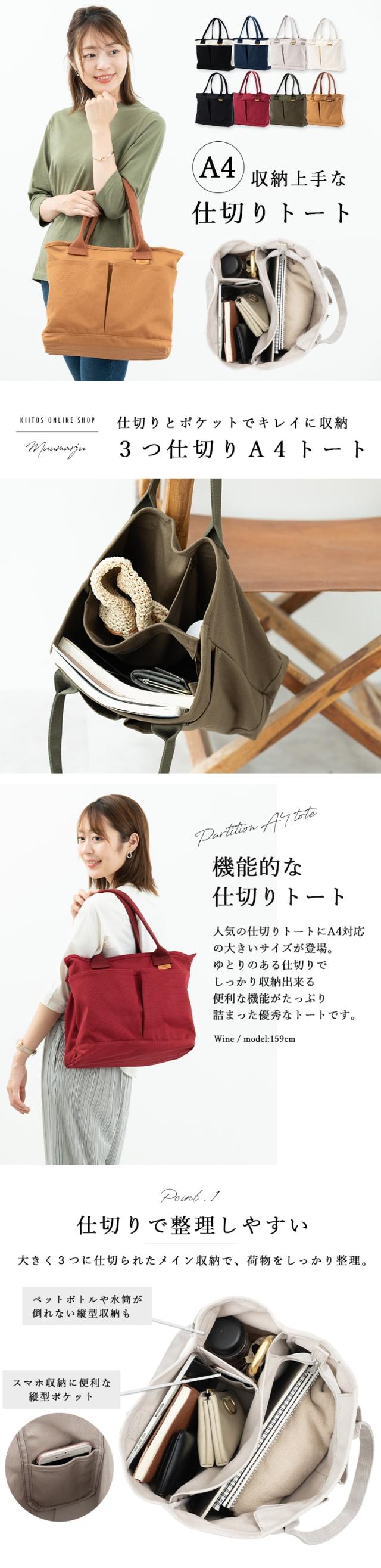 トートバッグ レディース a4 大きめ 布 キャンバス 自立 仕切り おしゃれ ファスナー付き チャック付き 大容量 大人 かわいい 旅行 通勤 通学 肩掛け 軽い プレゼント ギフト