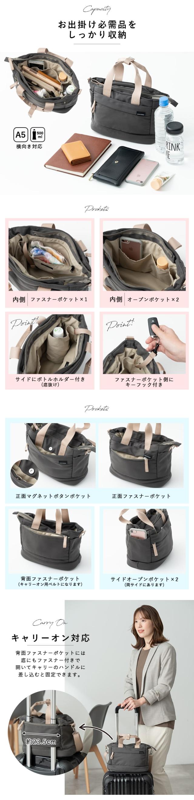 トートバッグ レディース ショルダーバッグ 斜め掛け 上品 軽量 おしゃれ 大人 かわいい 2way 撥水 ナイロン ボンディング a5 8ポケット ペットボトル 犬 散歩 通勤 通学 旅行 キャリーオン ファスナー付き マチ付き トラベル 20代 30代 40代 50代 プレゼント ギフト