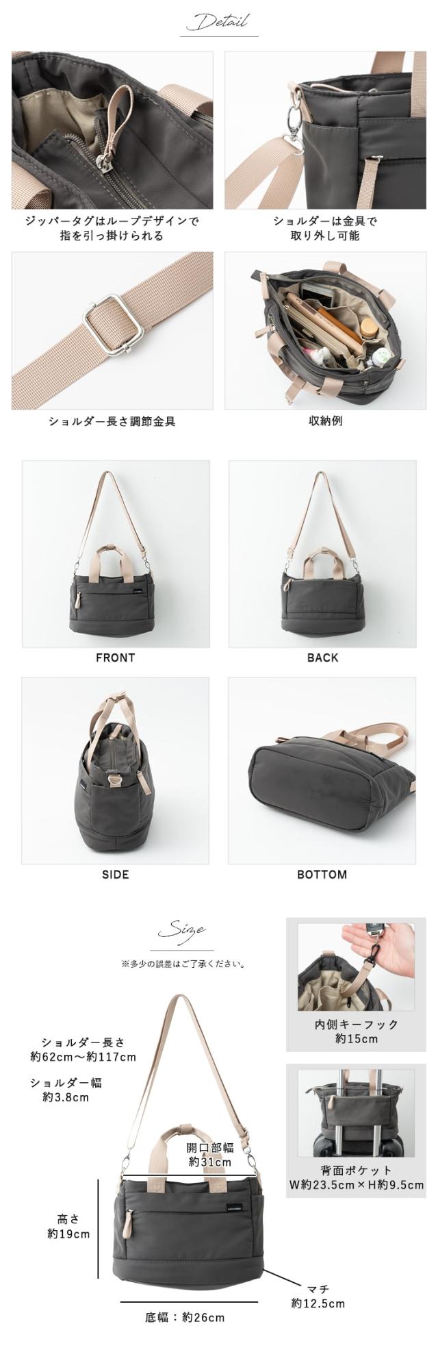 ショルダーストラップが取り外し可能な2way仕様で、ショルダーとトートの2スタイルが楽しめます。