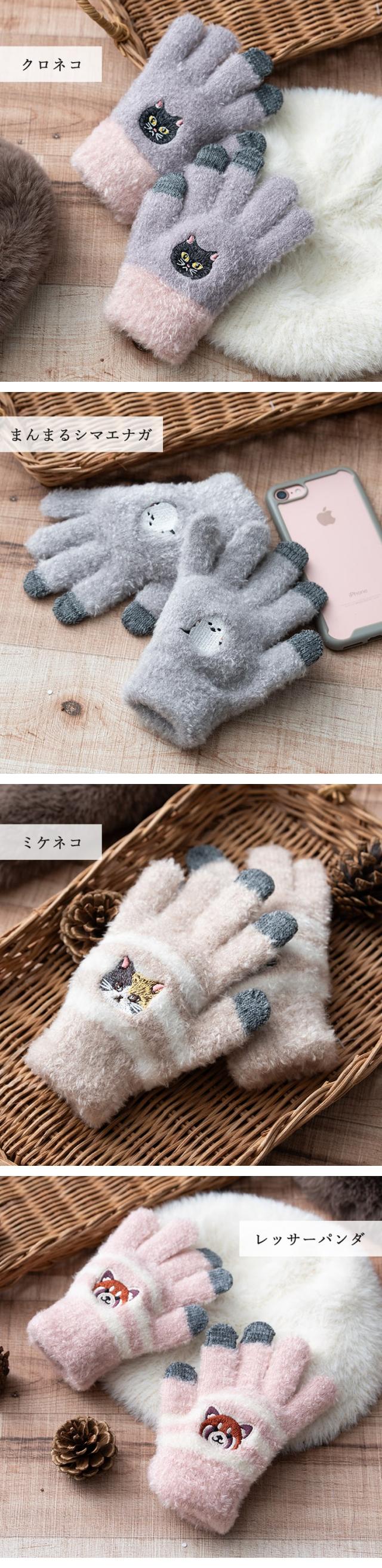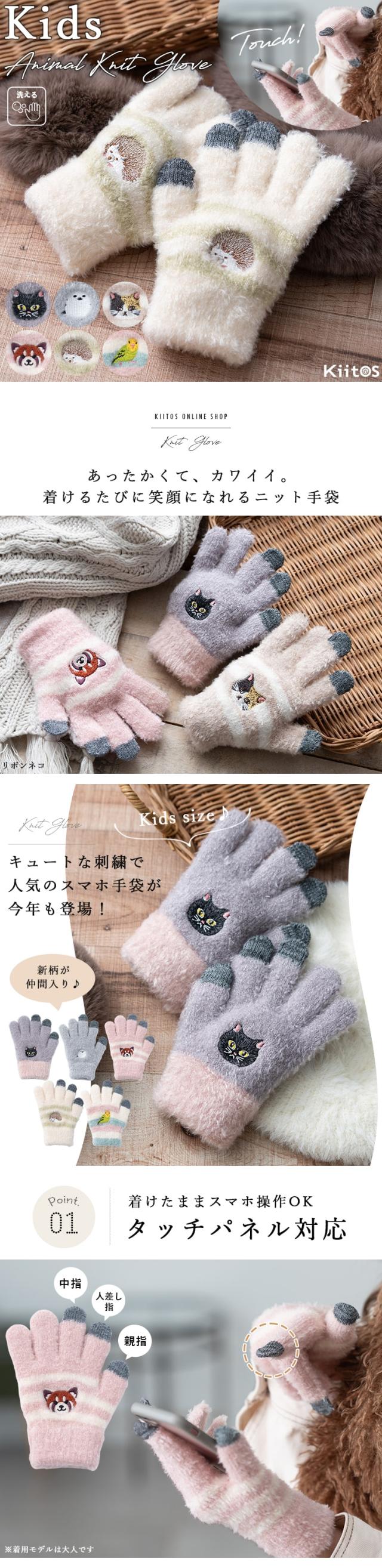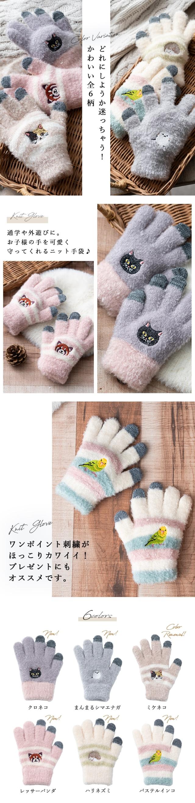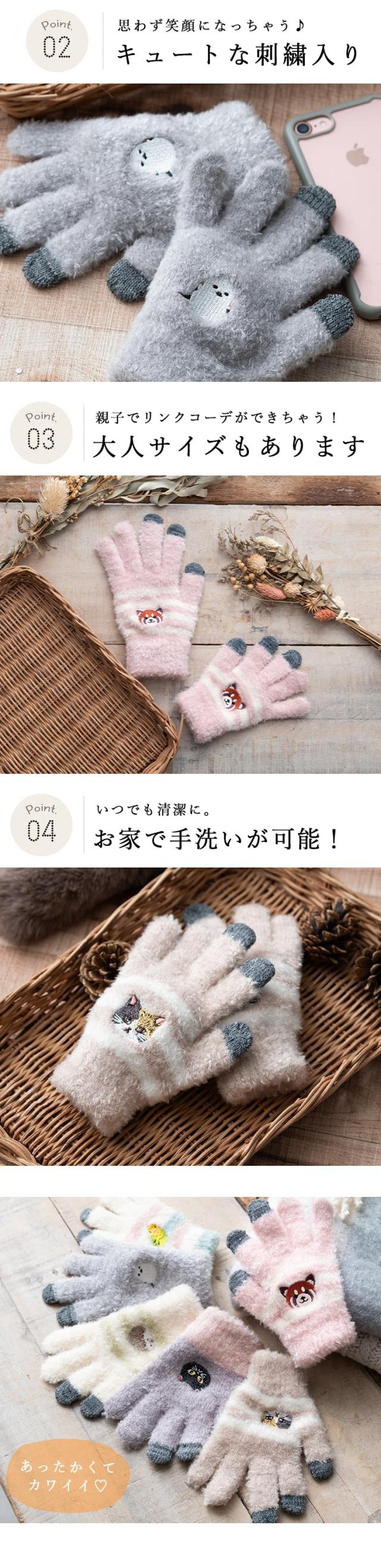 手袋 ニット キッズ 子供用 スマホ対応 五本指 男の子 女の子 防寒 スマートフォン タッチパネル グローブ ふわふわ もこもこ アニマル 動物 刺繍 かわいい キュート おしゃれ 暖かい レディース 親子 リンクコーデ プレゼント クリスマス ギフト 秋 冬