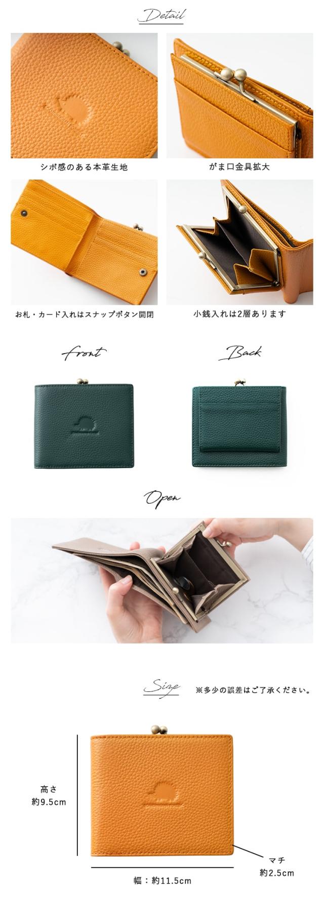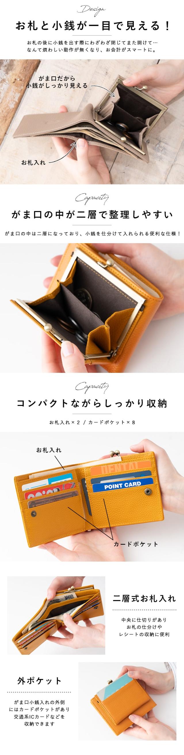 大きく開くがま口タイプの小銭入れとお札入れが一目で見える構造です。