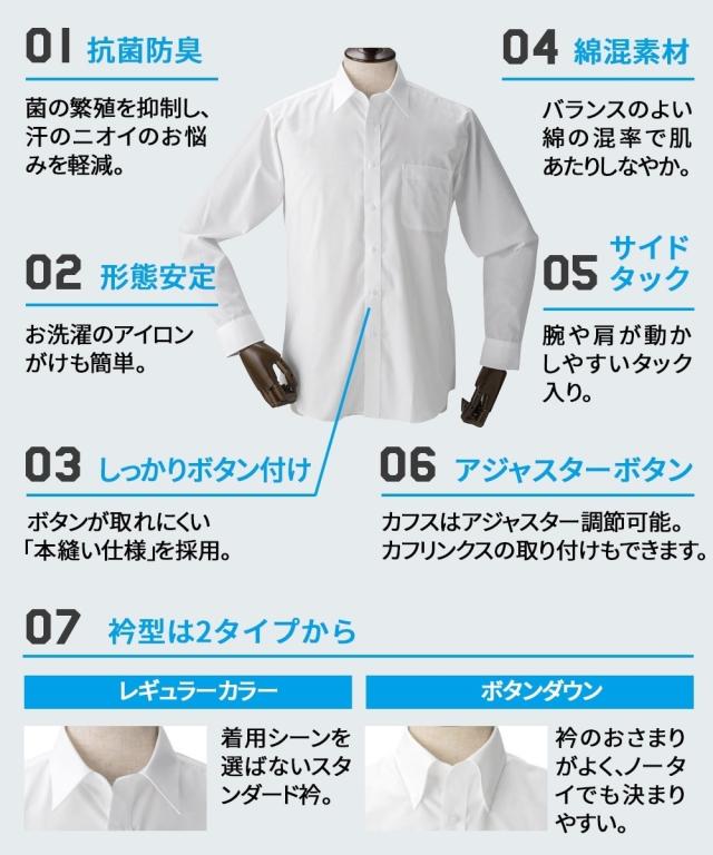 抗菌防臭・形態安定長袖ワイシャツ(ボタンダウン)(標準シルエット)