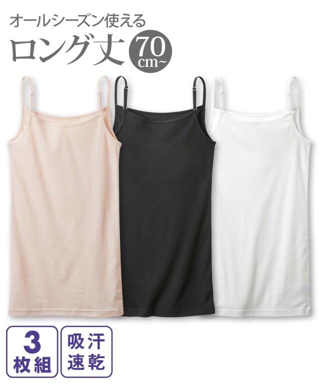 吸汗速乾 ロング丈綿混キャミソール3枚組