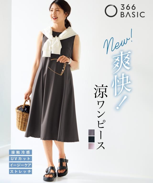 3大機能で夏の悩みに寄り添う爽快シリーズ! ■デザイン フレアシルエットですっぽり全身をカバー。 シンプルおしゃれなデザインで1枚できまるのでエレガンスなシーンにも最適。 ■素材 接触冷感で触れるとひんやり。UVカットで強い日差しから守る。 洗濯機で洗えて、シワになりにくくお手入れ簡単。 ■おすすめのスタイリング 膝下丈なので1枚で問題なく着こなせます。サンダルを履いて夏らしいコーデが可愛い。 透け感のあるカーディガンなどを羽織るのもおすすめ!