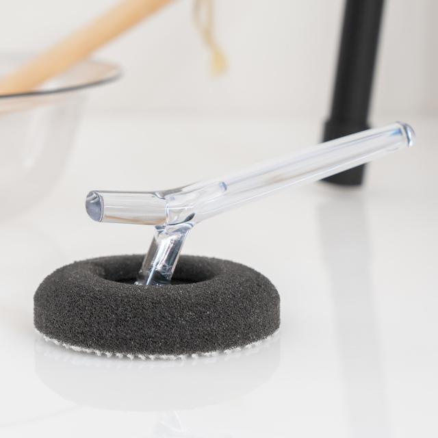 クリアな柄が特徴的なハンディタイプのバスタブ掃除用のスポンジです。使わないときはそのまま置いときたくなるような、シンプルでスタイリッシュなデザイン。握りやすく力の入りやすい形状のハンドルで、デザイン性と機能面を兼ね備えたお掃除アイテムです。