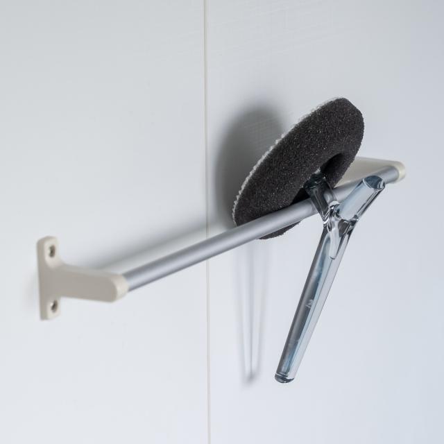 使わないときはタオルハンガーに引っ掛けて保管できます。水切れも良く乾きやすいので衛生的です。クリアな柄なので、掛けておいても存在感をあまり感じさせません。浴室にとけ込むおしゃれな掃除道具です。