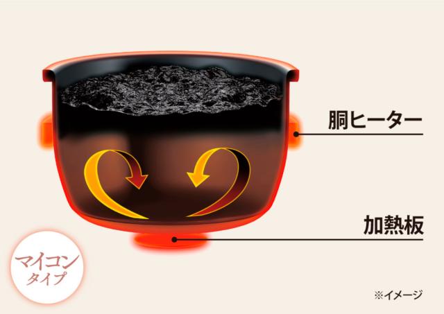 ![]() 高火力でふっくら炊き上げる 3合炊き | ![]() 蓄熱性の高い5mmの黒厚釜 3合炊き | ![]() 2.5mmの黒厚釜でふっくら炊き上がる 5.5合炊き |