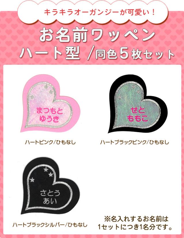 お名前ワッペン フェルト ハート型 同色5枚 ネームワッペン アイロン 入園 刺繍 プレゼント OR