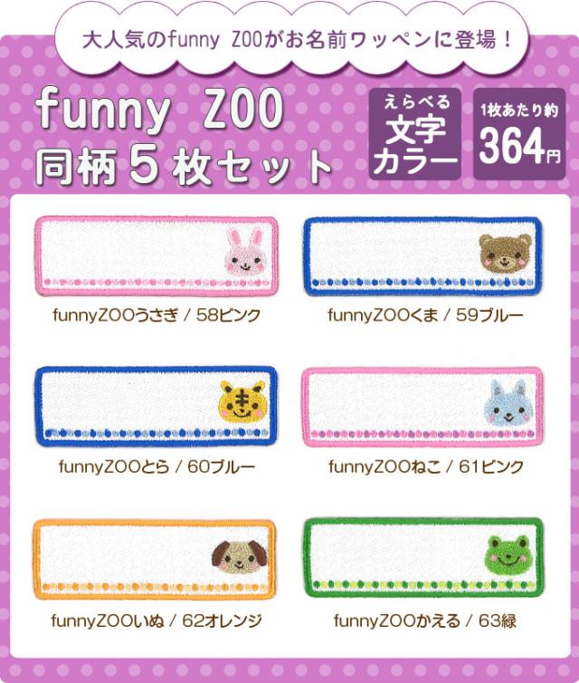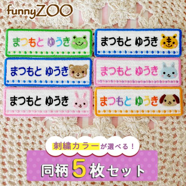 名入れ刺繍入りお名前ワッペン【funnyZOO 5枚セット】