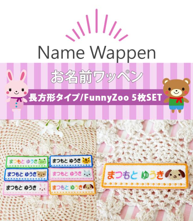 お名前ワッペン funnyZOO 5枚 ネームワッペン アイロン 入園 入学 刺繍 プレゼント 動物 長方形 OR