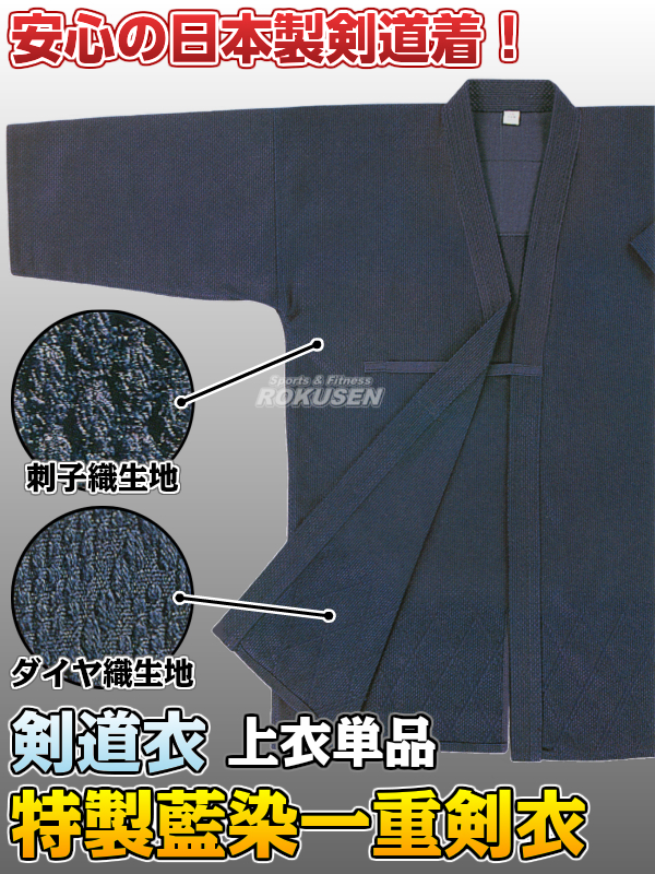 高柳 剣道着 特製藍染一重剣衣 腰ダイヤ織 Z-705 上衣単品 00号/0号/0.5号/1号/1.5号/2号/2.5号/3号/3.5号/4号/4.5号/5号