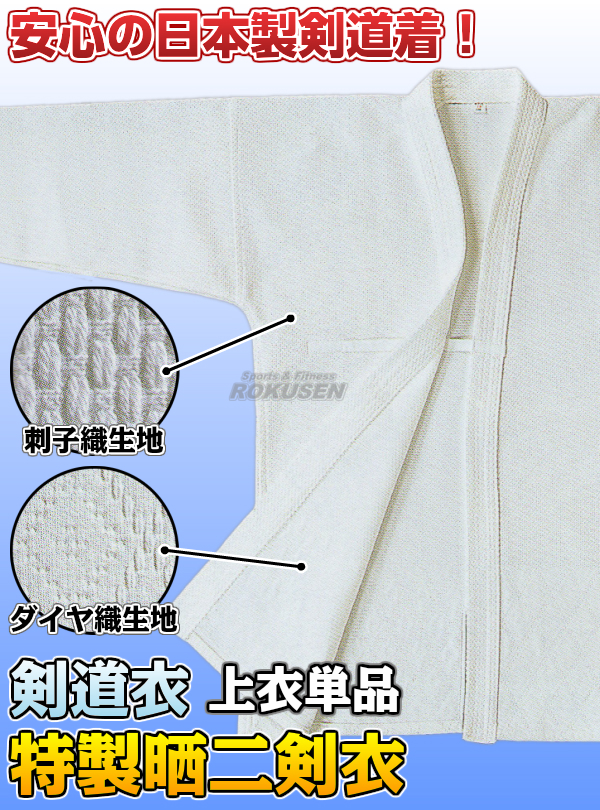 高柳 剣道着 特製晒二剣衣 腰ダイヤ織 Z-803 上衣単品 2号/2.5号/3号/3.5号/4号/4.5号/5号 剣道衣 劍道着 晒二重織剣道着