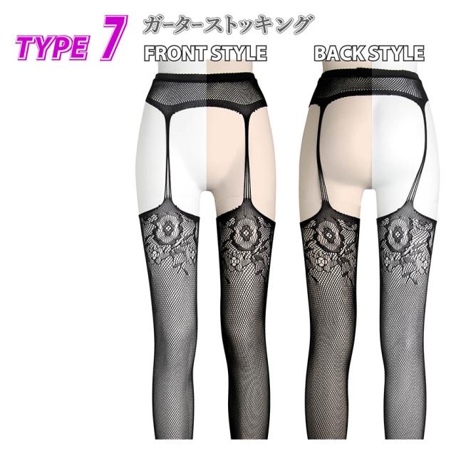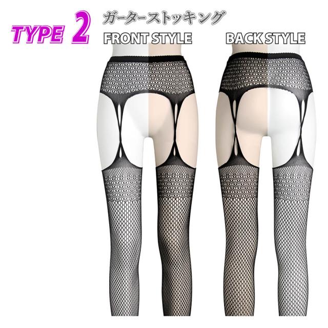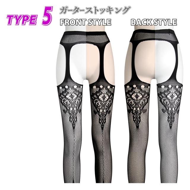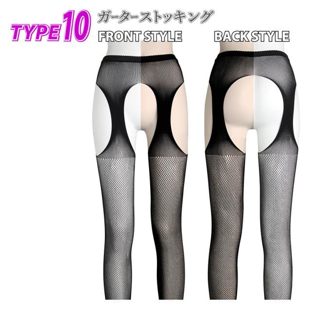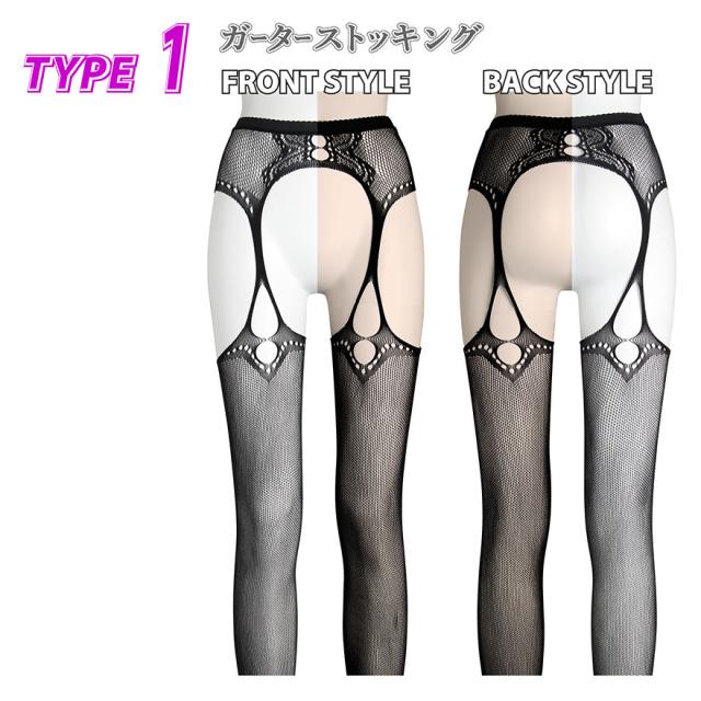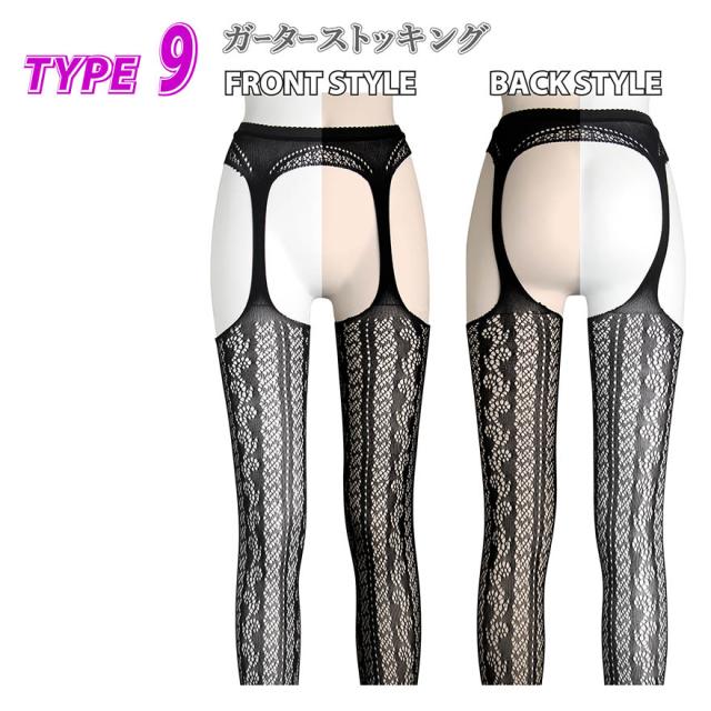 【メール便】 ガーター ストッキング サスペンダー 穴あき セクシー オーバーニー ランジェリー ストッキング コスプレ レディースインナー 衣装 勝負下着 黒 全10柄 10 タイプ 送料無料