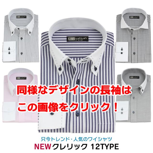 半袖 クレリック メンズ ワイシャツ ボタンダウン ドウェ ストライプ チェック 形態安定 Yシャツ ビジネス 12タイプ 6サイズ スリム 標準体 M L LL 3L から選べる HC-シリーズ