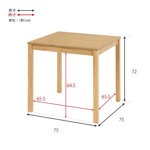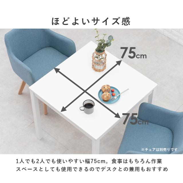 テーブルサイズは一人でも二人でも使いやすい幅75cm正方形。
