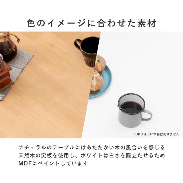 ホワイトとナチュラルの2タイプから選べるダイニングテーブル。