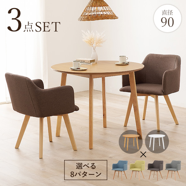 ダイニングセット 2人 円形90cm 北欧 おしゃれ シンプル ダイニングテーブル 選べる 白 テーブル チェア 2人掛け 可愛い 木製 円型 カフェ ファブリック 円型 テーブル チェアー 安い 1人暮らし 肘なし 白