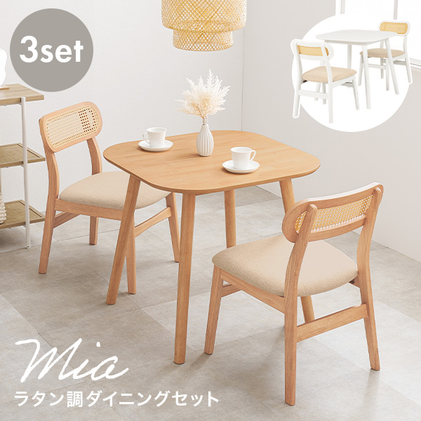 ダイニングセット テーブル チェア おしゃれ 白 セット 椅子 イス 2脚 北欧 韓国インテリア チェアー カゴメ編み 天然木 ダイニング ミア エマ ダイニングセット かごめ編み 一人暮らし 韓国