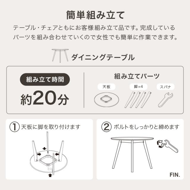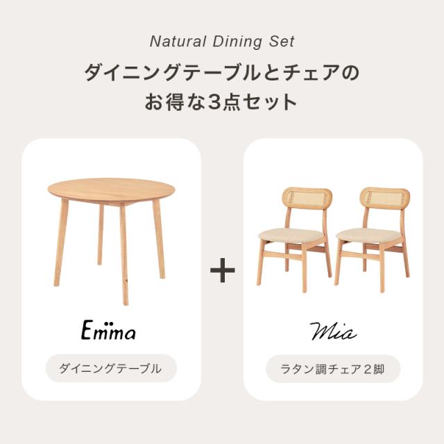 「エマ」シリーズのテーブルと「ミア」シリーズのチェア2脚のダイニング3点セット。