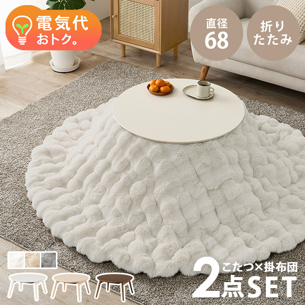 こたつ おしゃれ 北欧 白 こたつテーブル 丸型 こたつセット 1人用 コタツ 円形 折りたたみ 小さい 炬燵 丸 テーブル 白 可愛い 2点セット ブラーナ+ルナ 2点 セット コタツ ホワイト かわいい おしゃれ 一人暮らし 丸