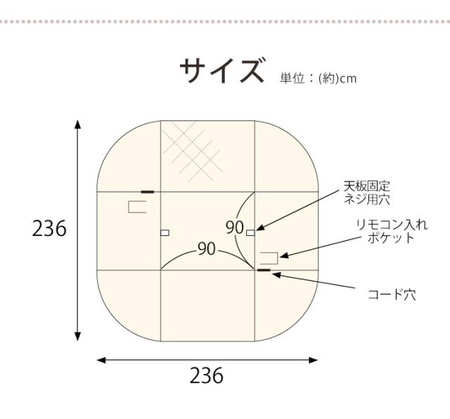 ![]() 80×80cm 正方形こたつ用 | ![]() ★90×90cm 正方形こたつ用 | ![]() 90×60cm 長方形こたつ用 | ![]() 105×80cm 長方形こたつ用 |