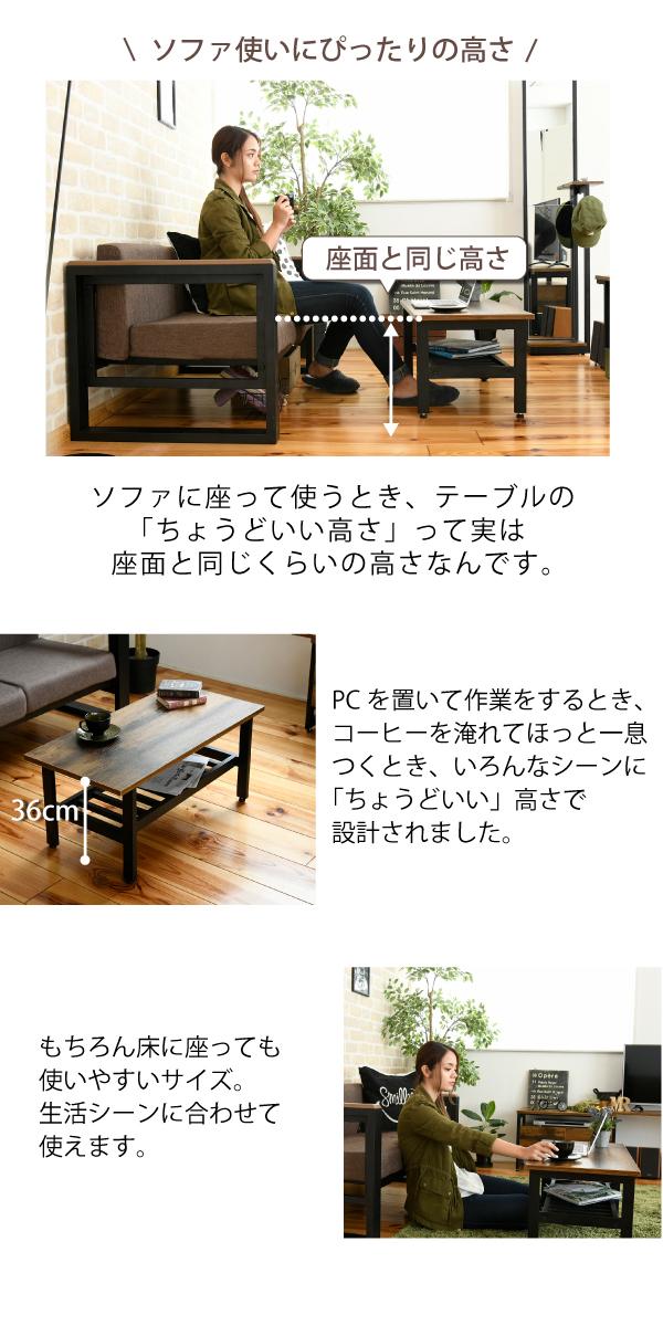 テーブル ローテーブル リビングテーブル おしゃれ センターテーブル 棚付き ヴィンテージ カフェテーブル インダストリアル 西海岸 幅80cm テーブル ローテーブル おしゃれ 木製 センターテーブル