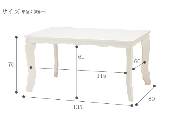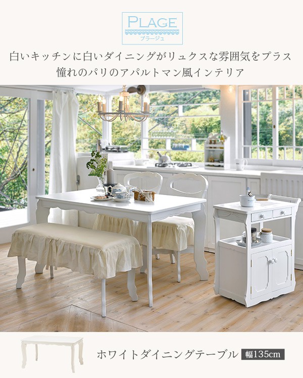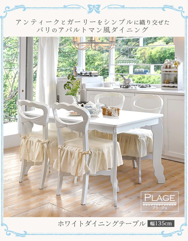 ダイニングテーブル ダイニングテーブル4人 テーブル 4人掛け おしゃれ 食卓テーブル 食卓テーブル4人用 単品 幅135cm 木製 白 長方形 姫系 プラージュ ダイニングテーブル 食卓テーブル 4人用 おしゃれ