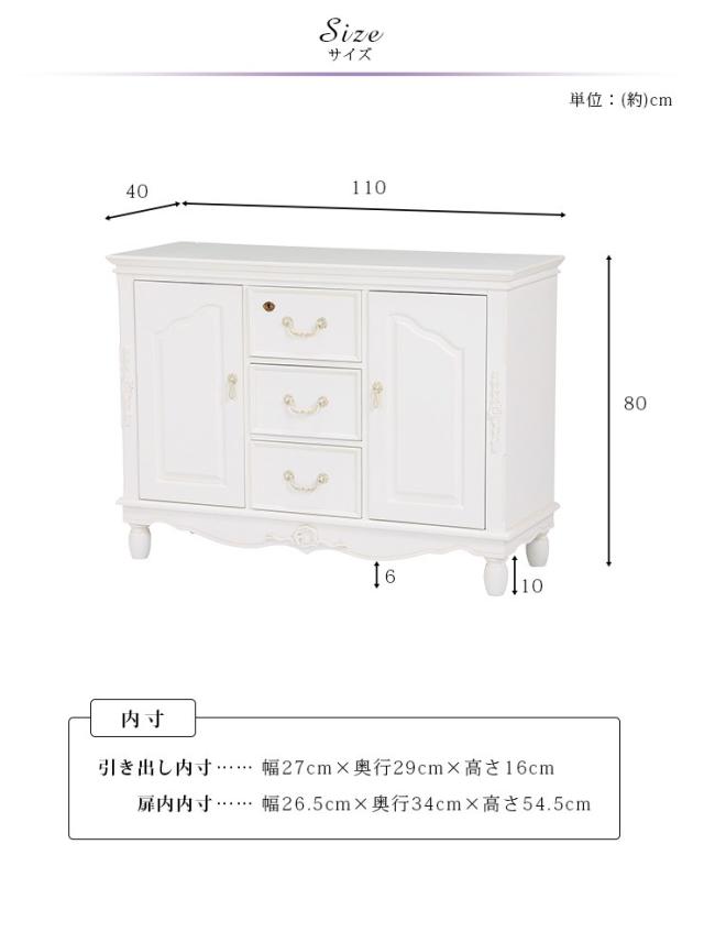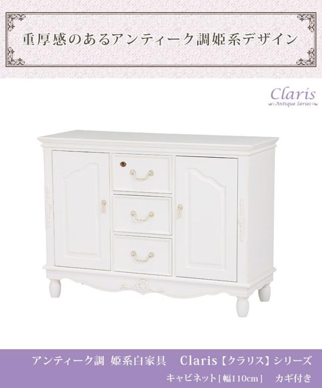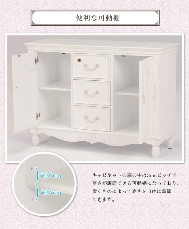 キャビネット サイドボード 収納棚 リビング おしゃれ 収納ラック 収納家具 ディスプレイラック 完成品 ホワイト 姫系 アンティーク風 クラリス キャビネット 収納 おしゃれ リビング 収納